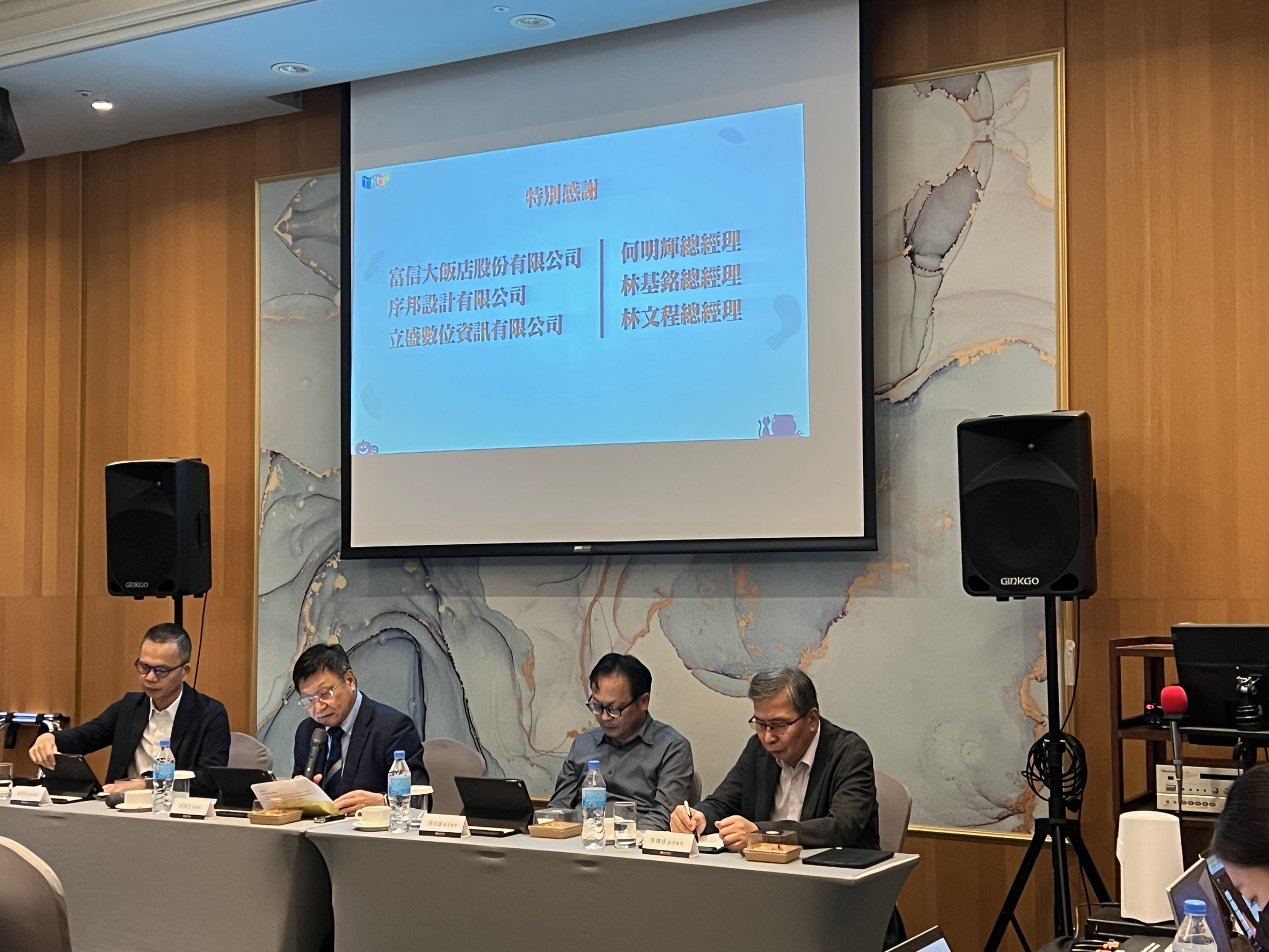 再次感謝富信大飯店股份有限公司何明輝總經理贊助本次場地、設備與會議茶點;序邦設計有限公司林基銘總經理招待本次晚宴。